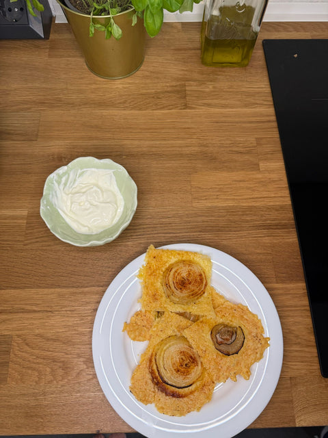 Dieser einfache, aber unglaublich leckere Snack ist perfekt für alle Käseliebhaber! Einfach geriebenen Käse auf ein Backblech geben, mit feinen Zwiebelscheiben toppen und im Ofen knusprig backen. Das Ergebnis? Goldbraune, herzhafte Käsechips mit einer leicht süßlichen Zwiebelnote – ideal als Snack oder als Topping für Suppen und Salate.