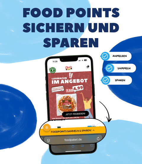 Mit unserem Foodpoints Programm sammelst du bei jedem Einkauf automatisch Punkte und kannst sie ganz nach deinem Wunsch einlösen. Für jeden Euro, den du ausgibst, erhältst du einen Foodpoint. Schon ab 75 Foodpoints bekommst du deinen ersten Gutschein im Wert von 5 Euro. Du entscheidest selbst, wann du deine Foodpoints einlöst. Sammle weiter, um noch größere Gutscheine zu erhalten und spare bei deinem nächsten Einkauf nach deinem eigenen Tempo.